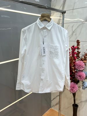 Loewe White Premium Shirt 2ply Heavy Oxford Cotton Fabric With custom Branded Button Tagging And Brand Poly Bag 3817