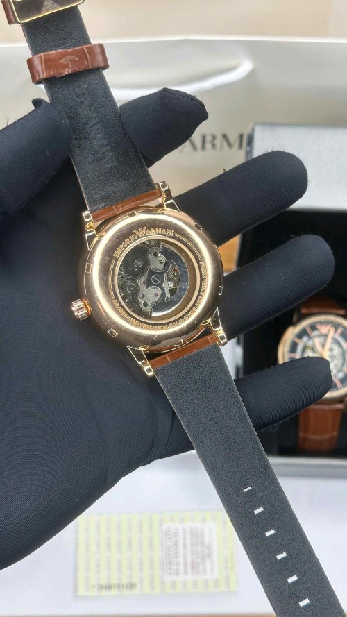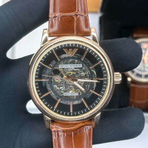 EMPORIO ARMANI_ AUTOMATIC SKELETON ROSE BLACK BROWN LEATHER BELT