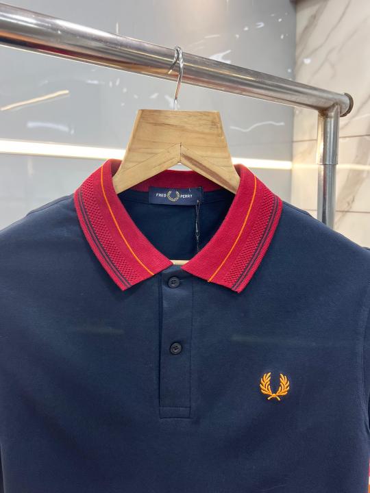 Home T-Shirts Fred Perr y Navy Premium Cotton Pique fabric Polo Tshirt with Collar Design and Embroidered Logo 3633