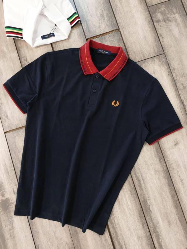 Fred Perr y Navy Premium Cotton Pique fabric Polo Tshirt with Collar Design and Embroidered Logo 3633