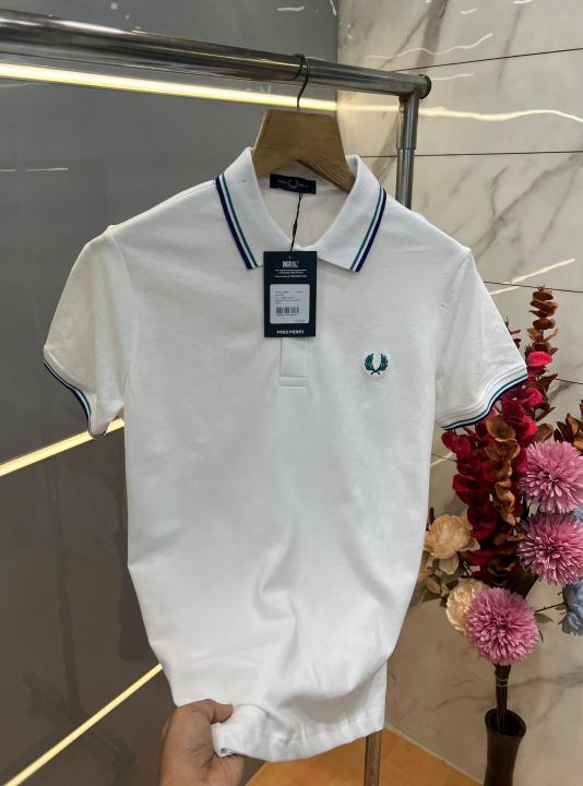 Home T-Shirts Fred Perr y White Premium Cotton Pique fabric Polo Tshirt with Collar Design and Embroidered Logo 3786