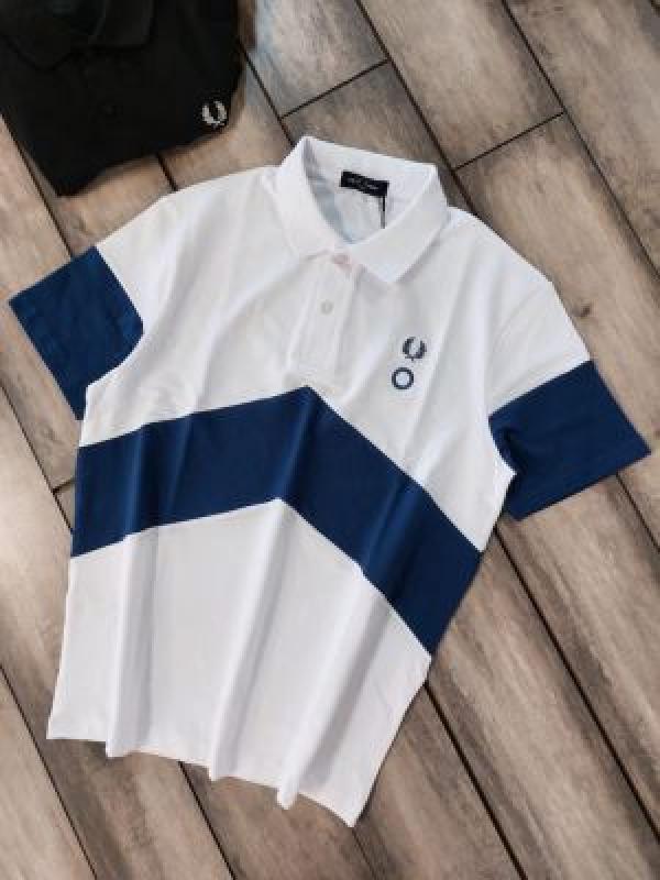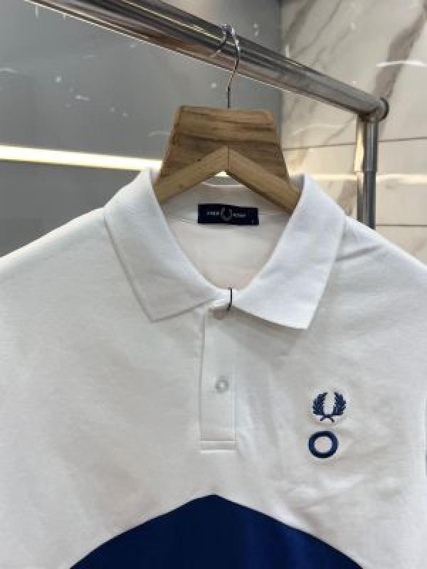 Fred Perr y White Premium Cotton Pique fabric Polo Tshirt with Front Design and Embroidered Logo 3634