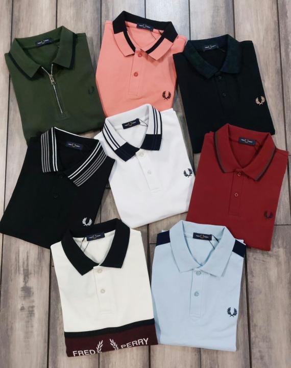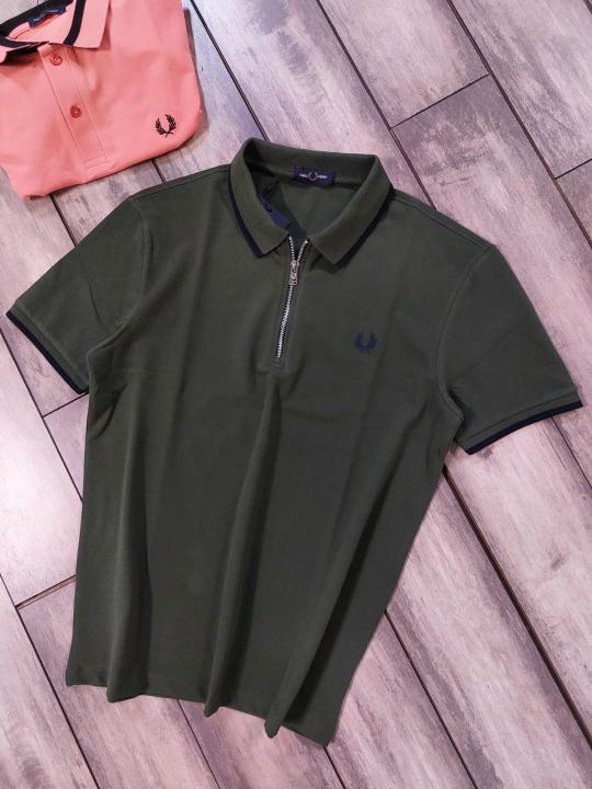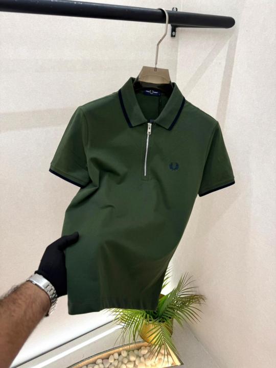 Home T-Shirts Fred Perry Green Polo Premium Collar Neck T-shirt F3541-GR