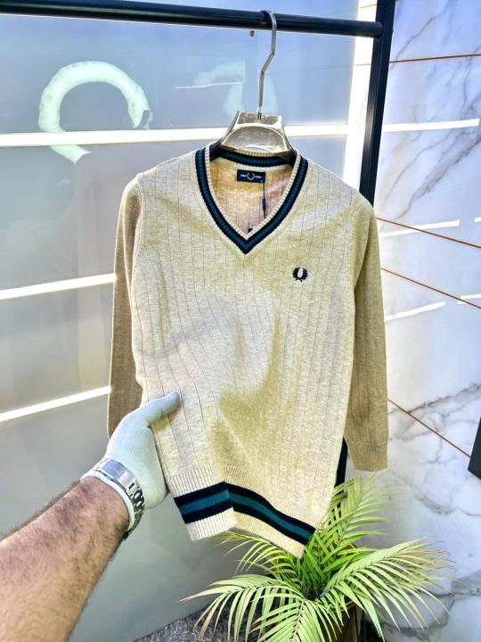 Home Premium sweatshirts Fred Perry Imported Beige V Neck Super Premium Sweatshirts F3270-BE