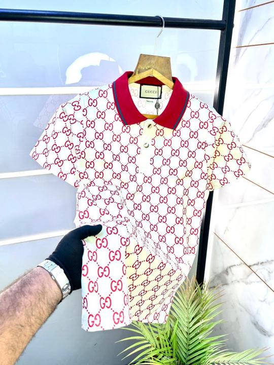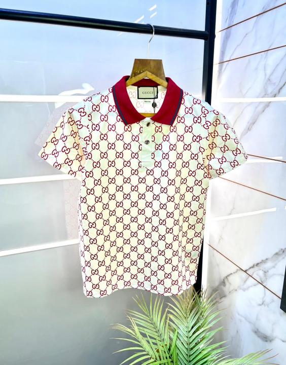 Home T-Shirts Gucc i Monogram White Imported Polo Neck Premium Collar T-shirt F1856-W1