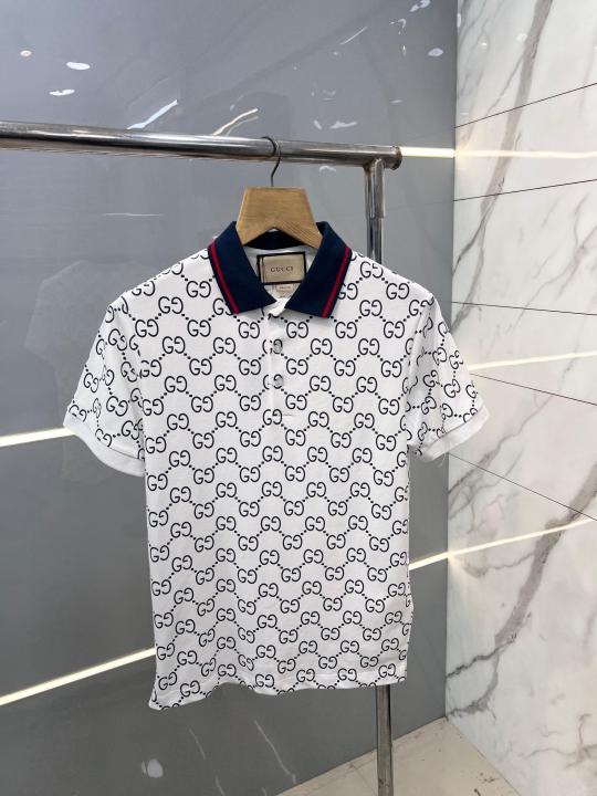 Gucc i White Premium Polo T shirt With 240 gsm interlock cotton lycra fabric and Collar Design 2523