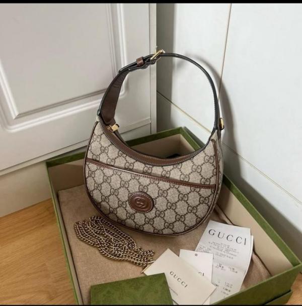 Home Hand bags Gucci_Ophidia_GG_Marmont_Half_Moon_Shoulder_Bag_With_Box_Dustbag_SlingChain_Bill