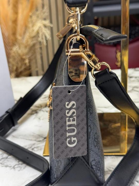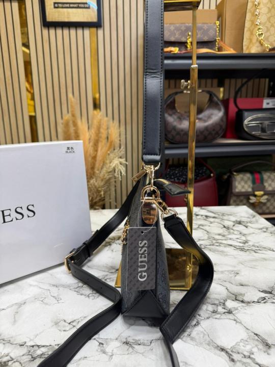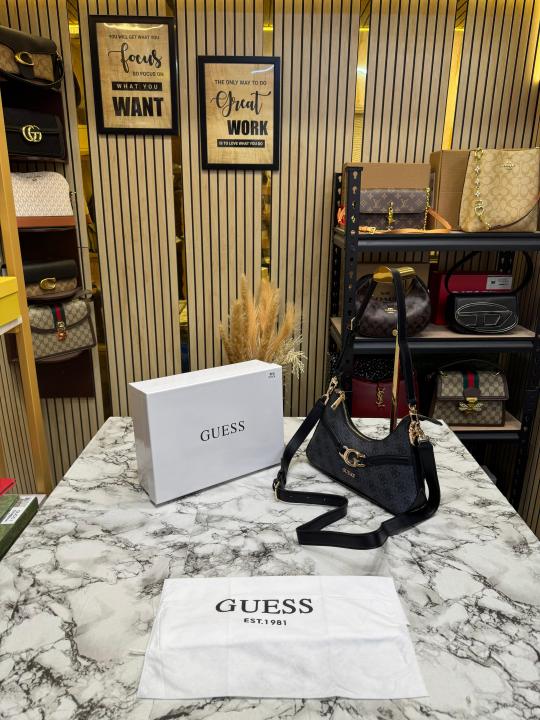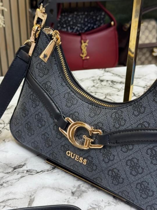 Guess Signature Monogram Baguette Shoulder Bag With Box And Dust Bag (Grey)