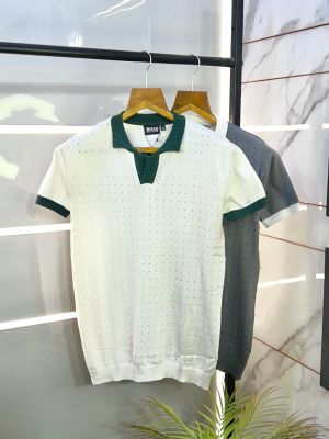 Gucc i White Monogram Imported Polo Neck Premium Collar T-shirt F1856-W2