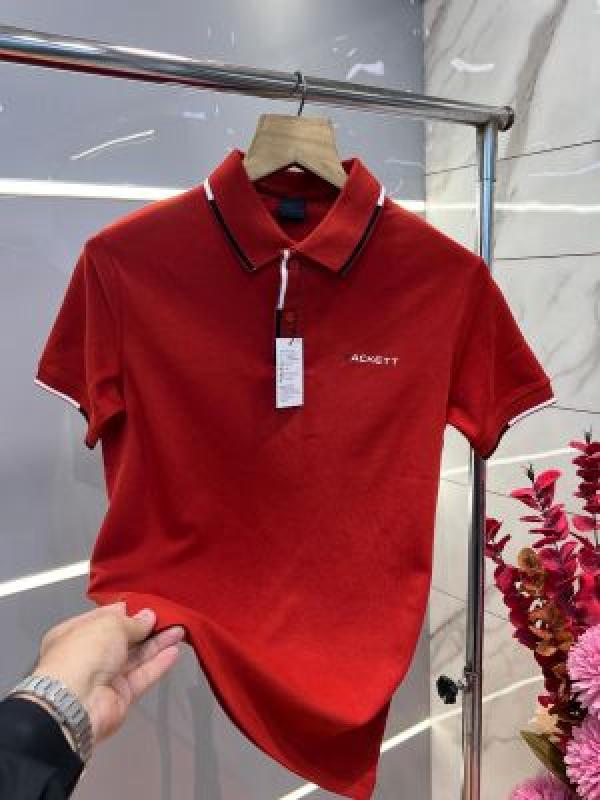 Hacke t Red Premium 240 gsm interlock compact cotton fabric Polo Tshirt with Front Design and Emboss Logo 2988
