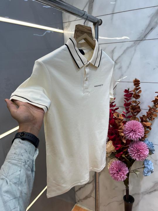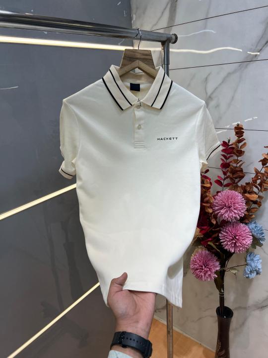Home T-Shirts Hacket Beige Premium Imported Compact Yarn 240 GSM Interlock Fabric Polo Tshirt with Collar Design and Emboss Logo 3912