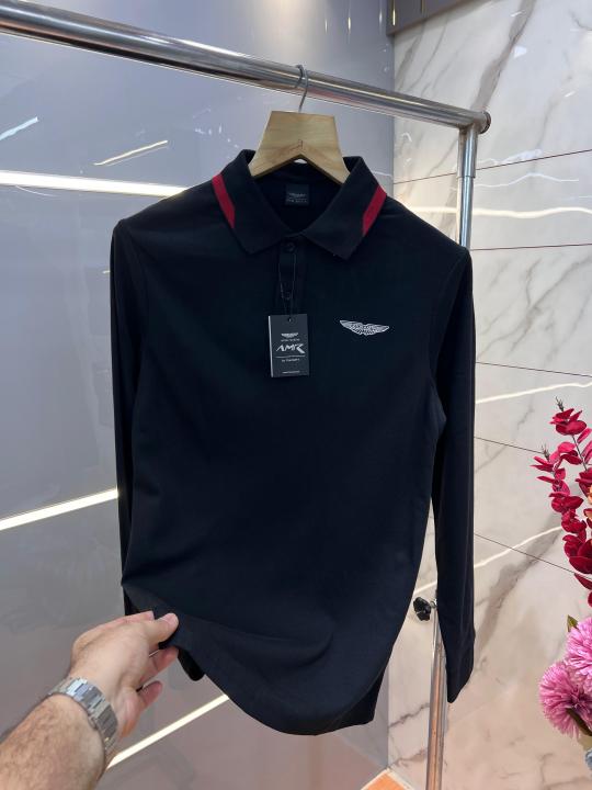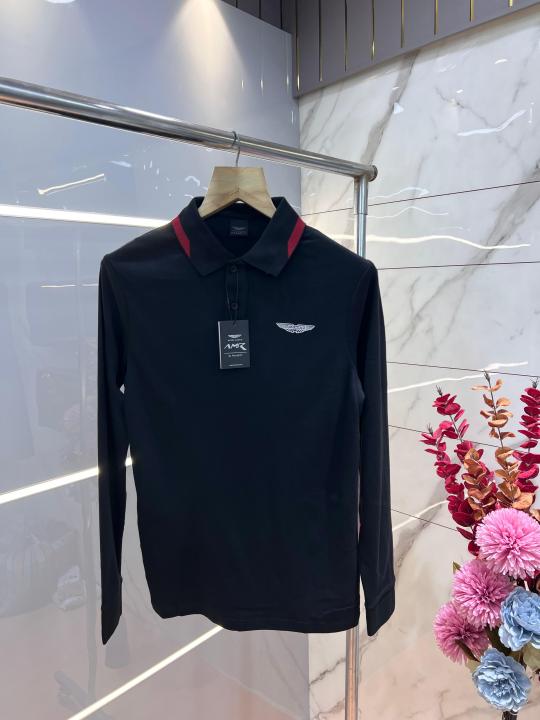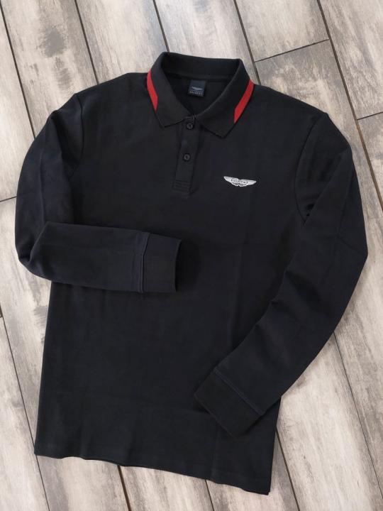 Home T-Shirts Hacket Black Premium Imported Compact Yarn 240 GSM Interlock Fabric Polo Full Sleeves Tshirt with Collar Design and Emboss logo 3226