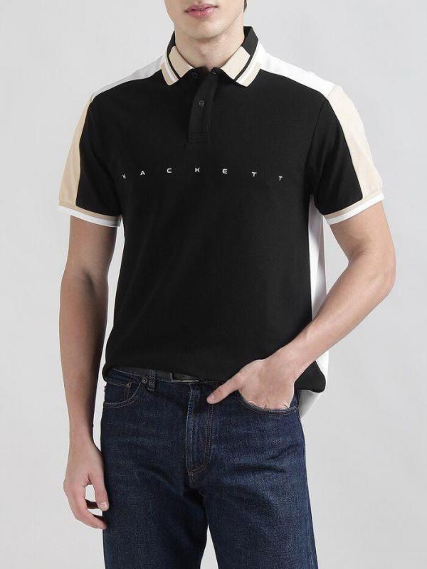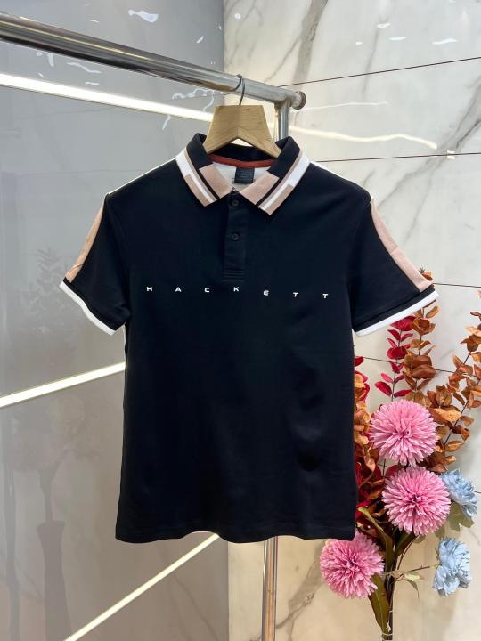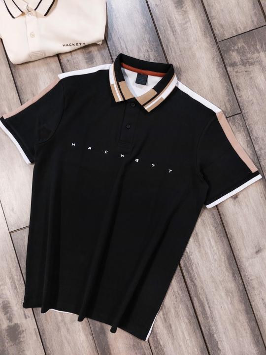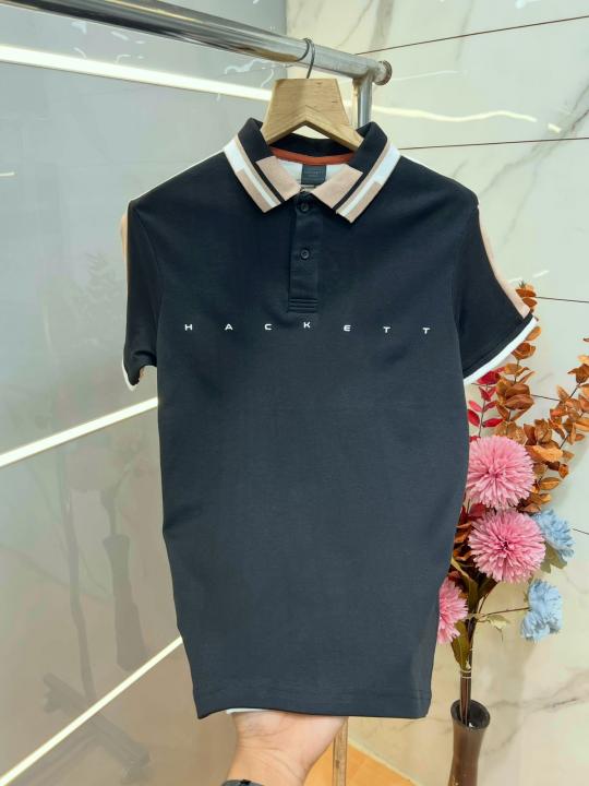 Hacket Black Premium Imported Compact Yarn 240 GSM Interlock Fabric Polo Tshirt with Collar Design and Emboss Logo 3913