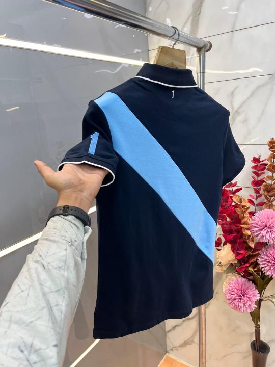Home T-Shirts Hacket Navy Premium Imported Compact Yarn 240 GSM Interlock Fabric Polo Tshirt with Back Design and Emboss Logo 3911