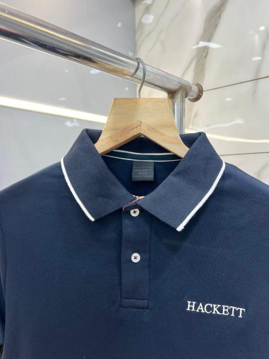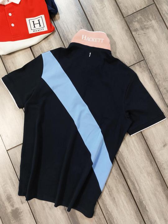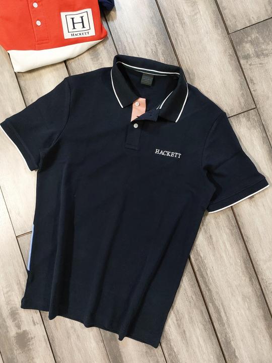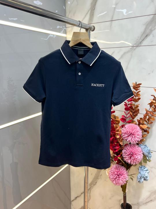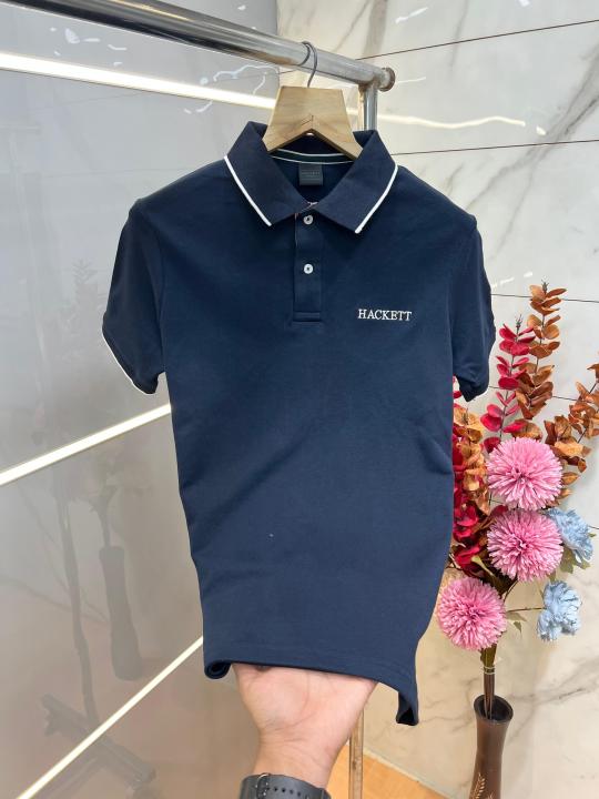 Hacket Navy Premium Imported Compact Yarn 240 GSM Interlock Fabric Polo Tshirt with Back Design and Emboss Logo 3911