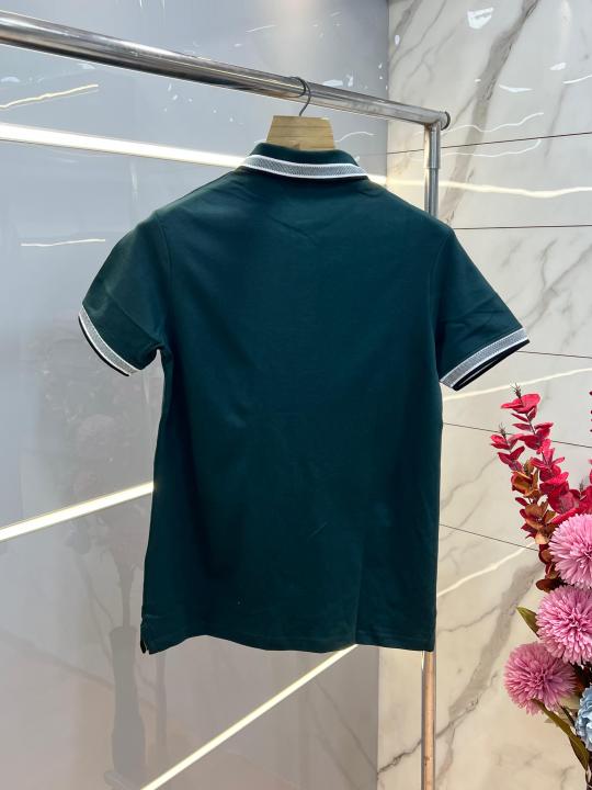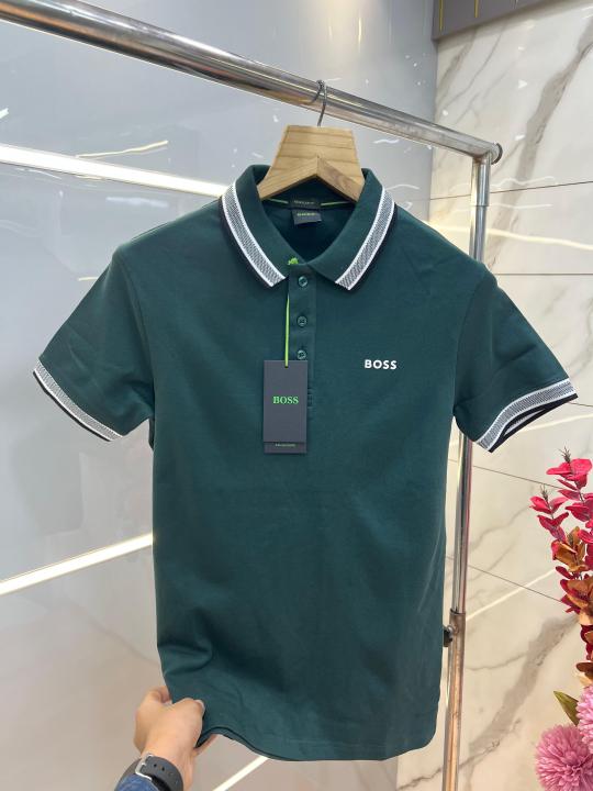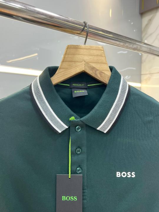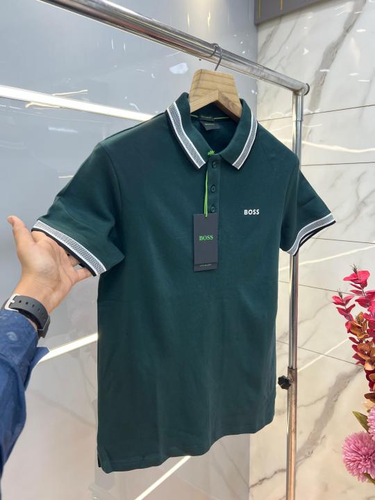 Hugo Bos s Green Premium 240 gsm interlock compact cotton fabric Polo Tshirt with Collar Design and Emboss Logo 3745