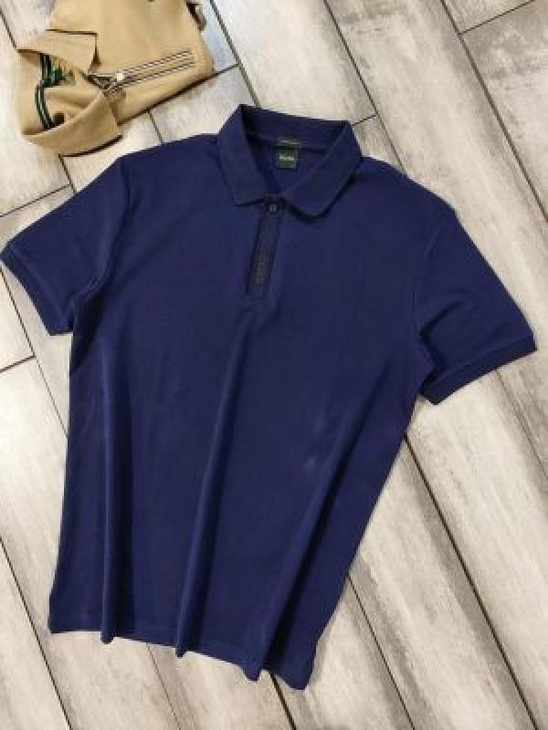 Hugo Bos s Inkblue Premium 240 gsm interlock compact cotton fabric Polo Tshirt with Front Design and Emboss Logo 3367