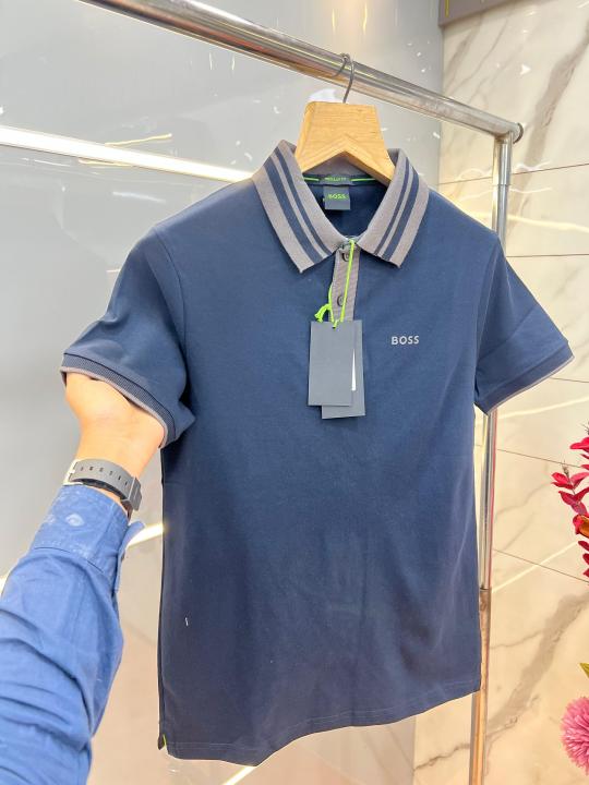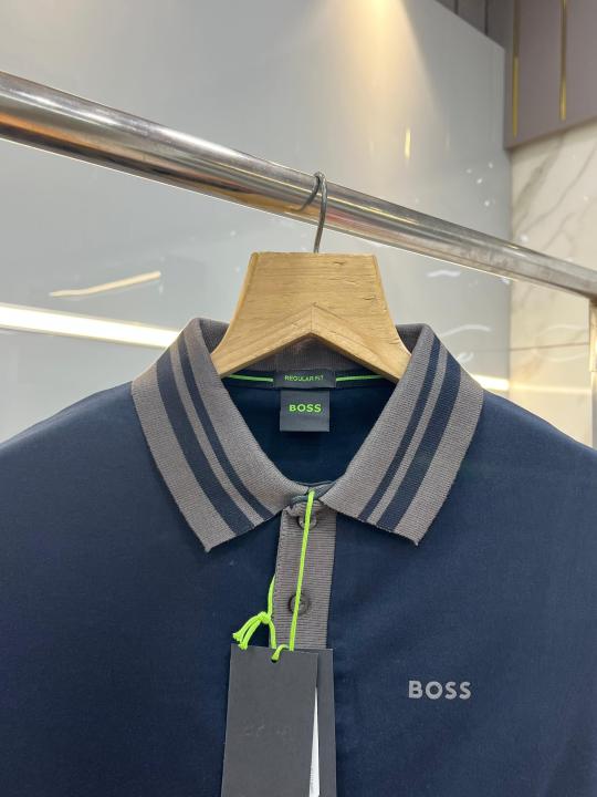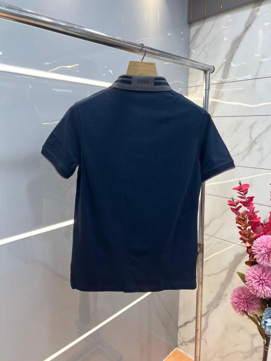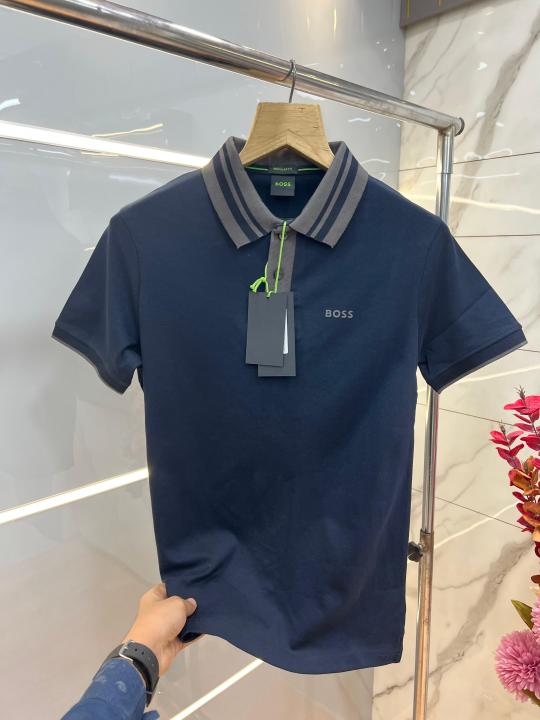 Hugo Bos s Blue Premium 240 gsm interlock compact cotton fabric Polo Tshirt with Collar Design and Emboss Logo 3747