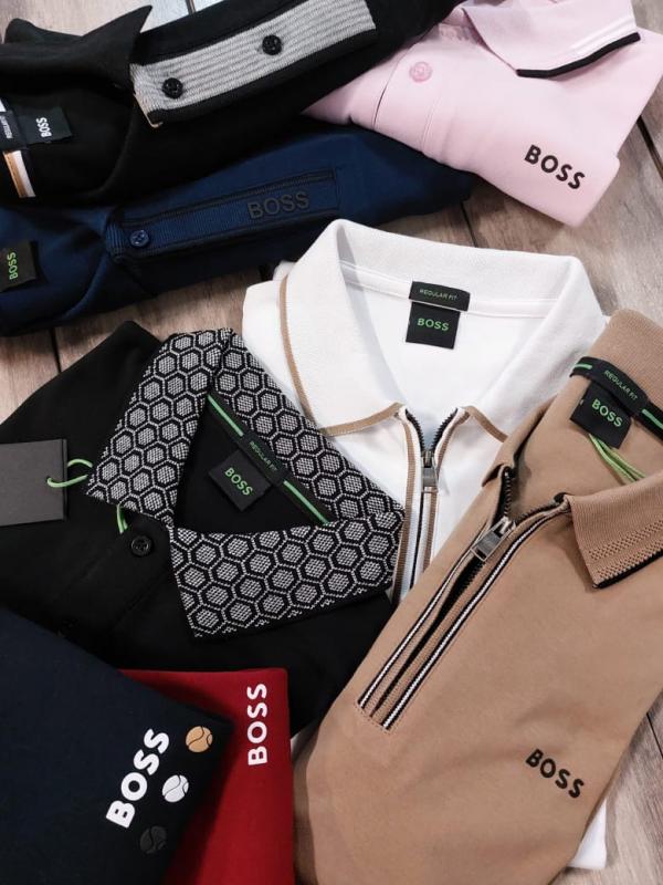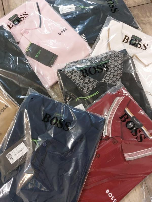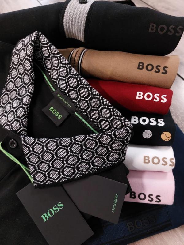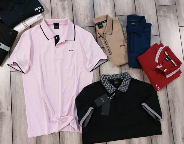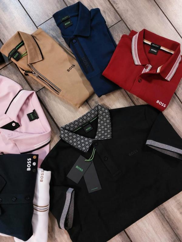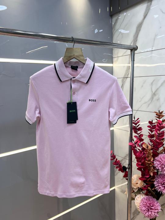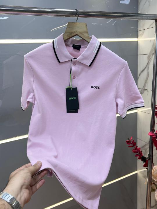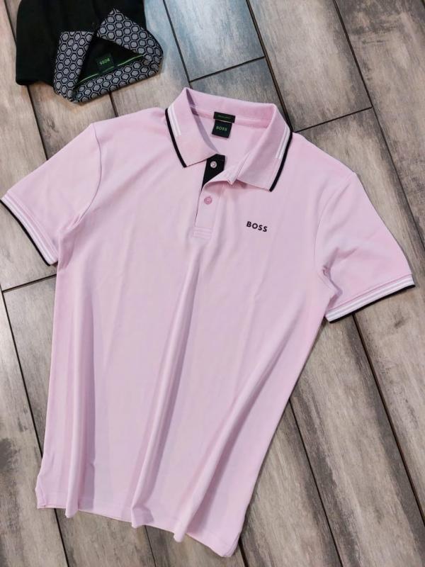 Hugo Bos s Pink Premium 240 gsm interlock compact cotton fabric Polo Tshirt with Collar Design and Emboss Logo 3362