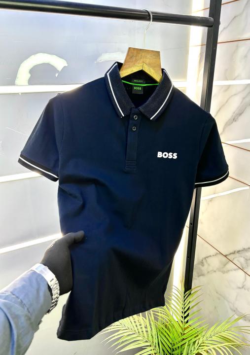 Hugo_Boss Navy Embossed Logo Print Premium Collar Neck Polo T-shirt F1691-NY