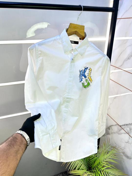 Home Shirts Karl Lagerfeld Imported Back Printed Oxford Lycra Premium White Shirt With Brand Packing F3103-W3