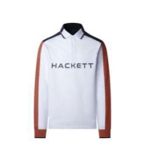 Hacket White Premium Imported Compact Yarn 240 GSM Interlock Fabric Polo Full Sleeves Tshirt with Collar Design and Emboss logo 3224