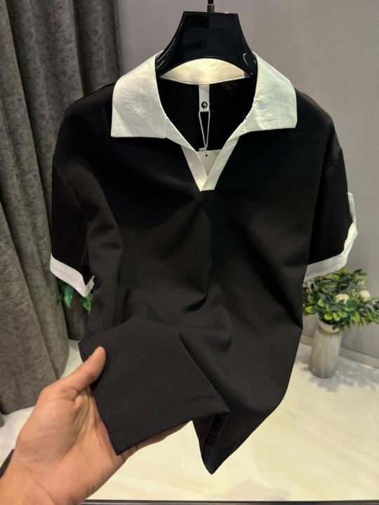 KOREAN IMPORTED HIGH DEMAND ARTICLE POLO T-SHIRT BLACK WHITE
