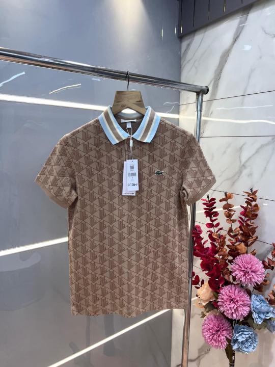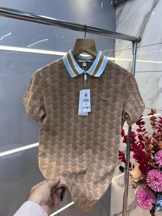 Home T-Shirts Lacost e Beige Premium Cotton Lycra Pique fabric Polo Tshirt with Collar Design and Embroidered Logo 3027