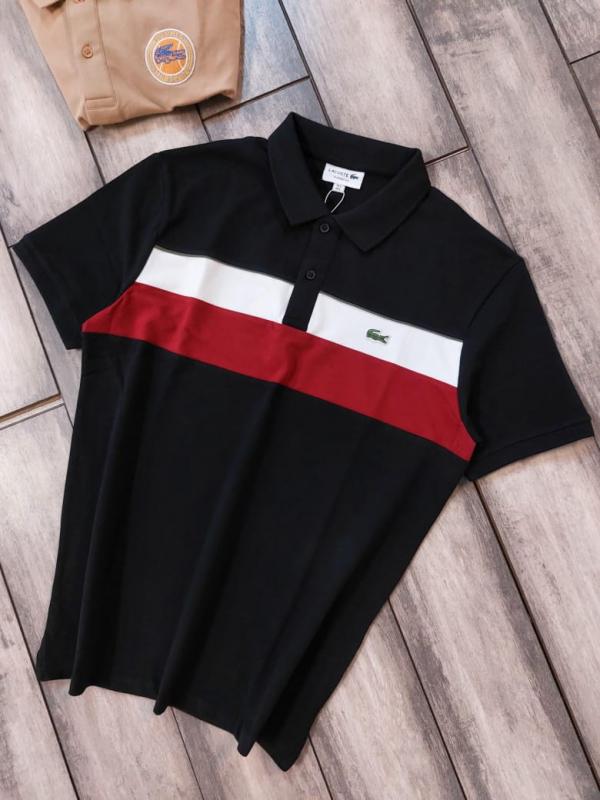 Lacost e Black Polo Premium Collar Neck T-shirt F3048-B1
