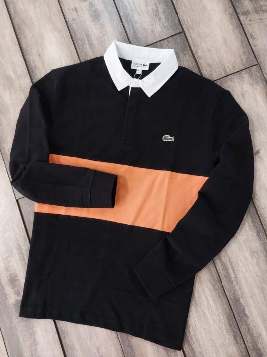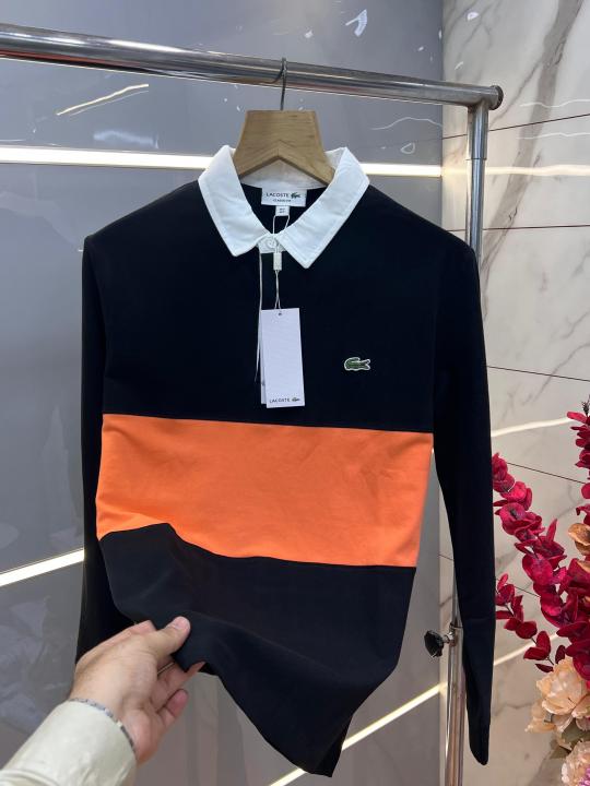 Lacost e Black Premium Cotton Lycra Pique fabric Polo Full Sleeves Tshirt with Front Design and Embroidered Logo 3297