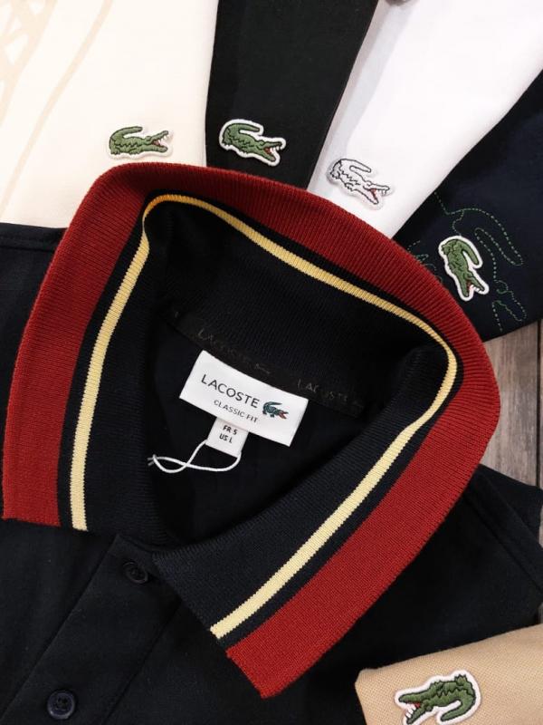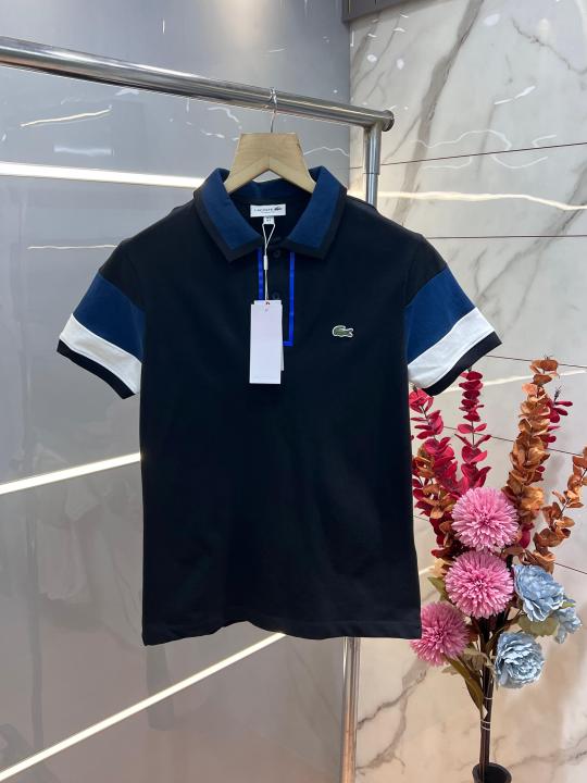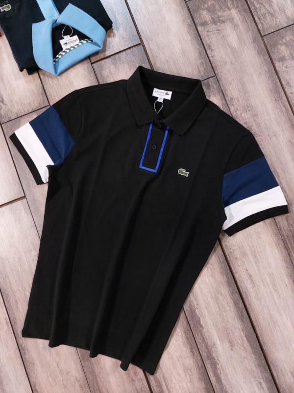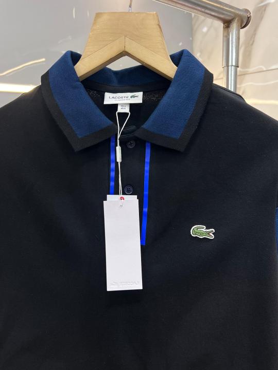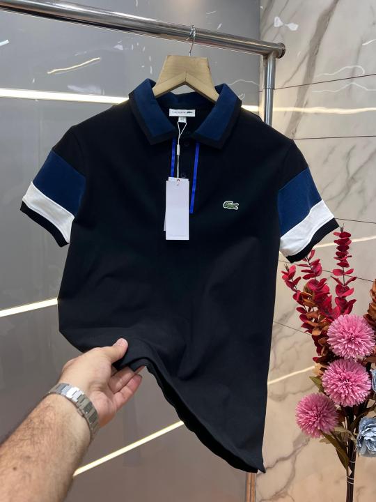 Lacost e Black Premium Cotton Pique fabric Polo Tshirt with Front Design and Embroidered Logo 3538