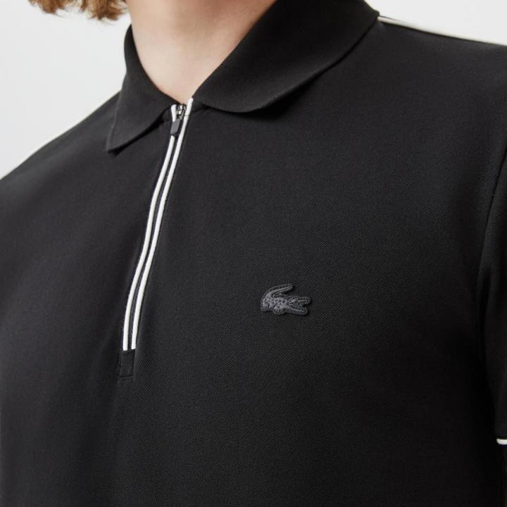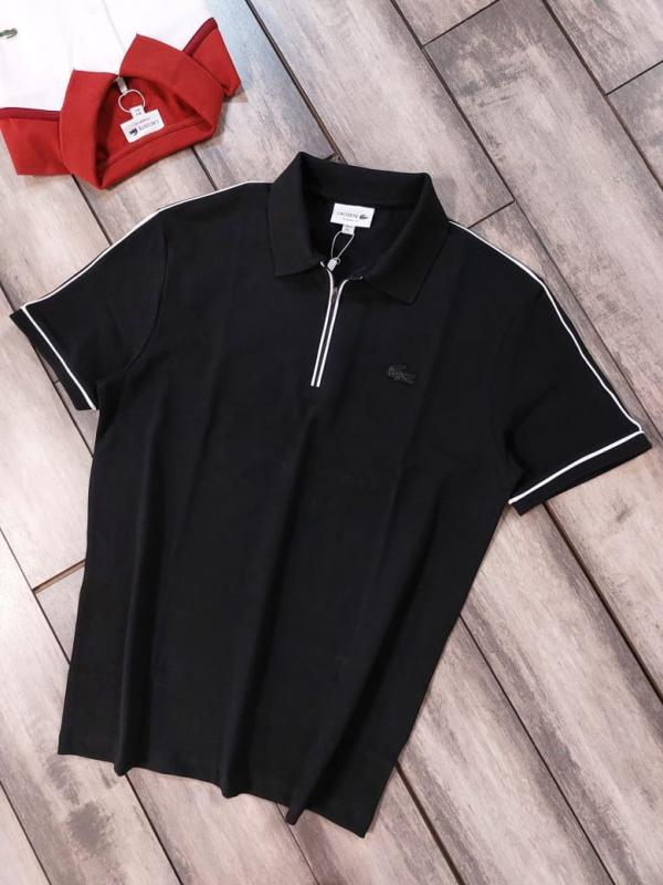 Home T-Shirts Lacost e Black Premium Cotton Pique fabric Polo Tshirt with Front Design and Embroidered Logo Zip Style 3534