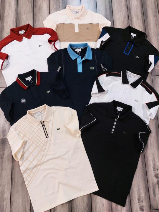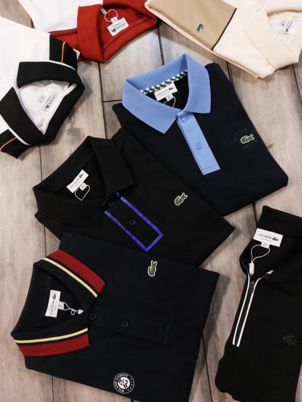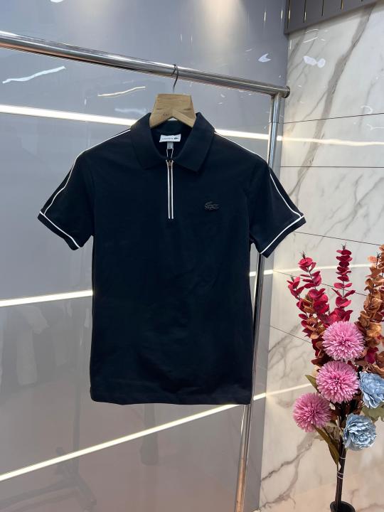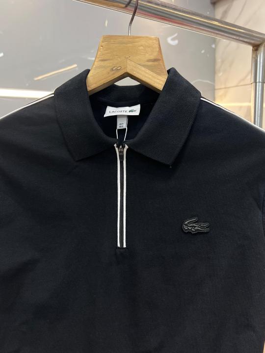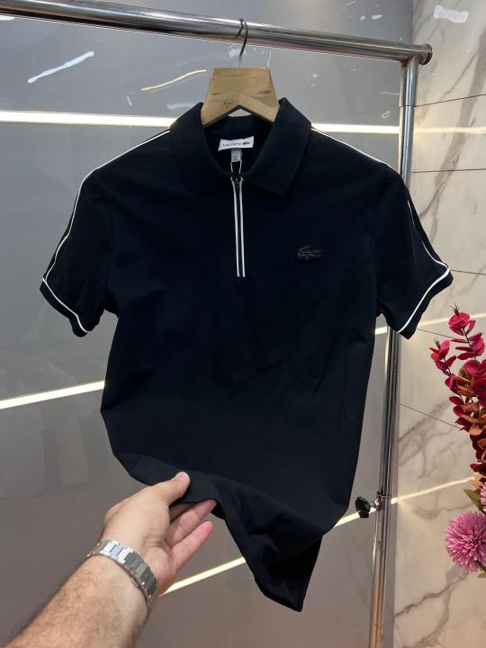 Lacost e Black Premium Cotton Pique fabric Polo Tshirt with Front Design and Embroidered Logo Zip Style 3534