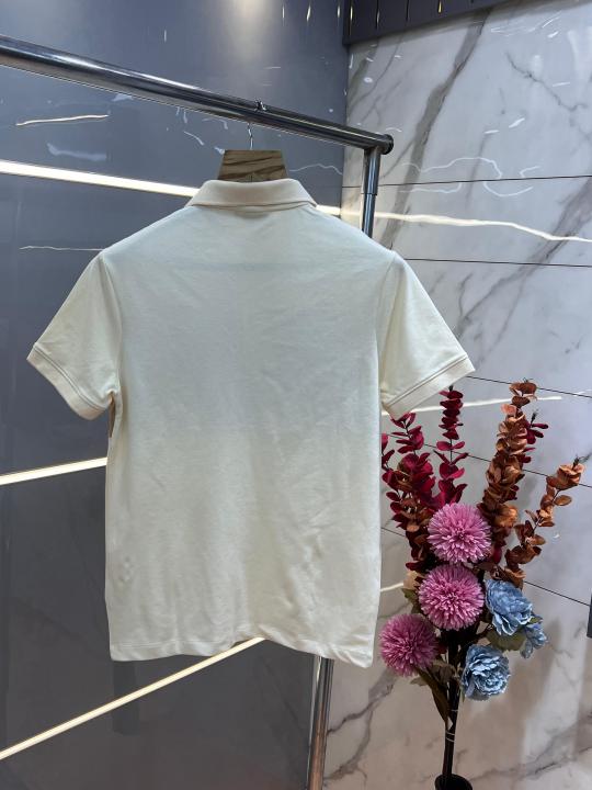 Home T-Shirts Lacost e Cream Premium Cotton Pique fabric Polo Tshirt with Front Design and Embroidered Logo 3539