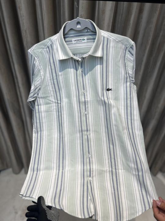 LACOST_E BEIGE BLUE IMPORTED ULTRA PREMIUM SHIRT AVAILABLE