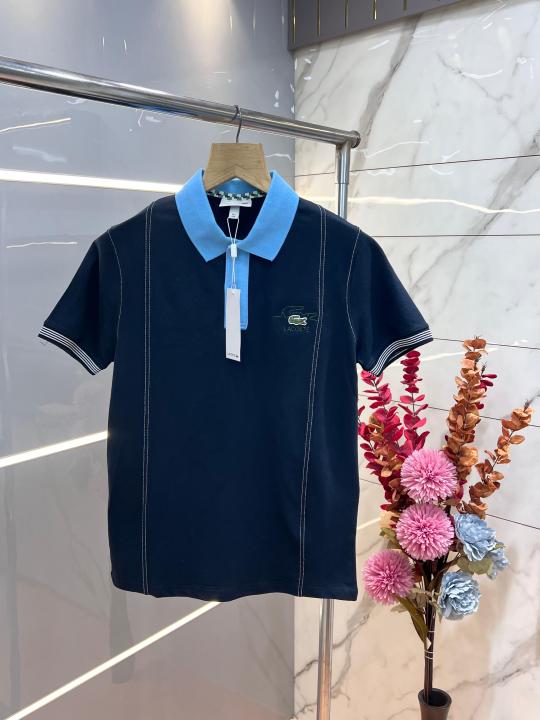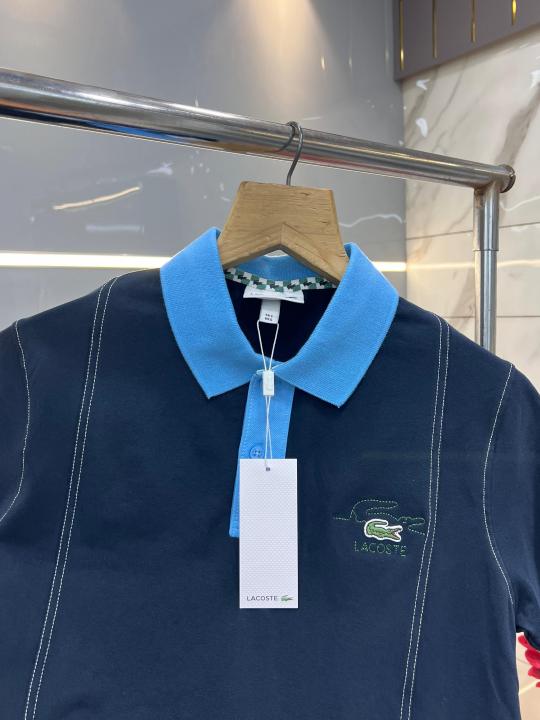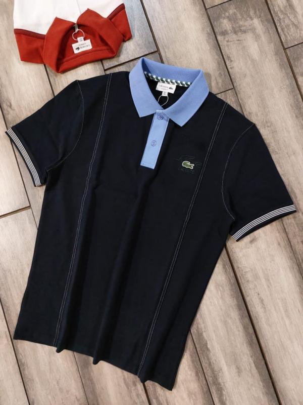 Lacost e Navy Premium Cotton Pique fabric Polo Tshirt with Front Design and Embroidered Logo 3537
