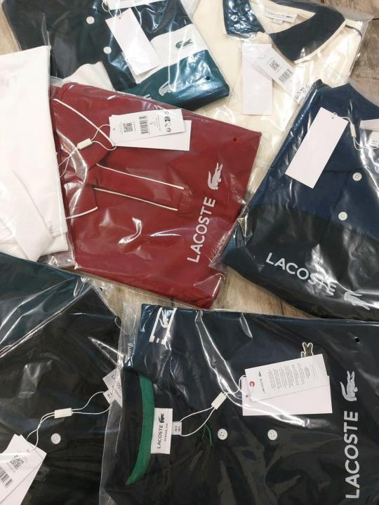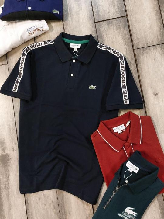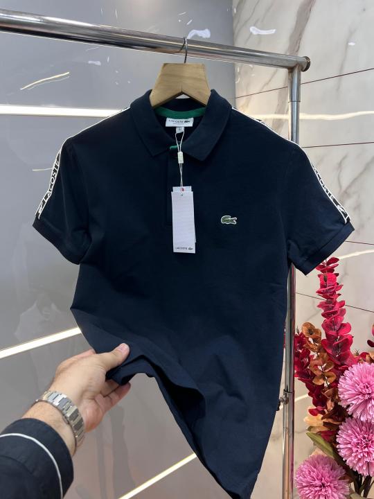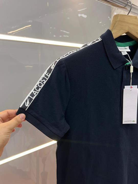 Lacost e Navy Premium Cotton Pique fabric Polo Tshirt with Shoulder Design and Embroidered Logo 3458