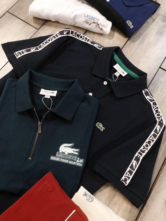 Lacost e Green Premium Cotton Pique fabric Polo Tshirt with Back Design and Embroidered Logo Zip Style 3459