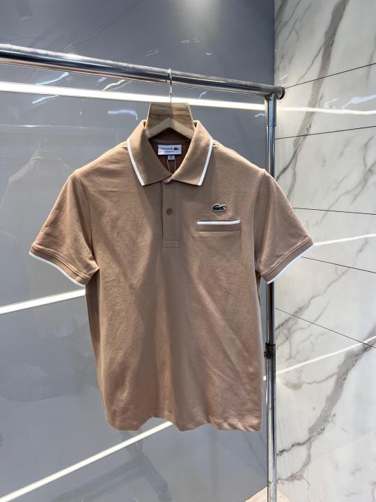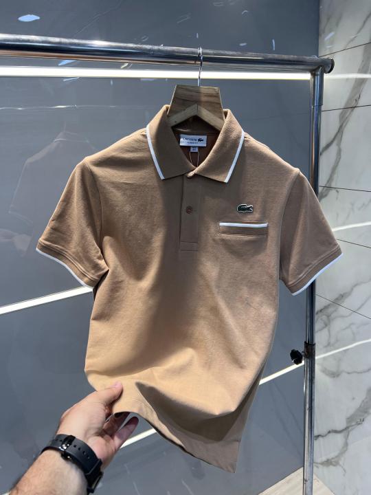 Lacost e Beige Premium Cotton Lycra Pique fabric Polo Tshirt with Collar Design and Embroidered Logo 3027