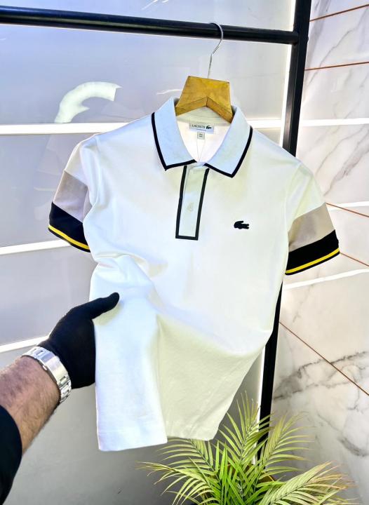 Home T-Shirts Lacost e White Polo Premium Collar Neck T-shirt F3056-W2