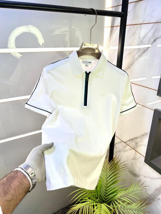 Home T-Shirts Lacost e White Polo Premium Collar Neck T-shirt F3457-WH