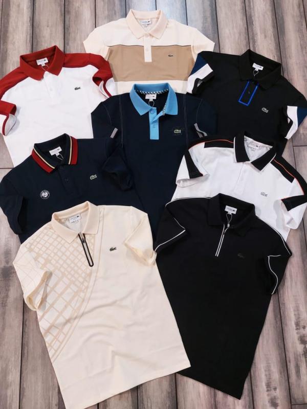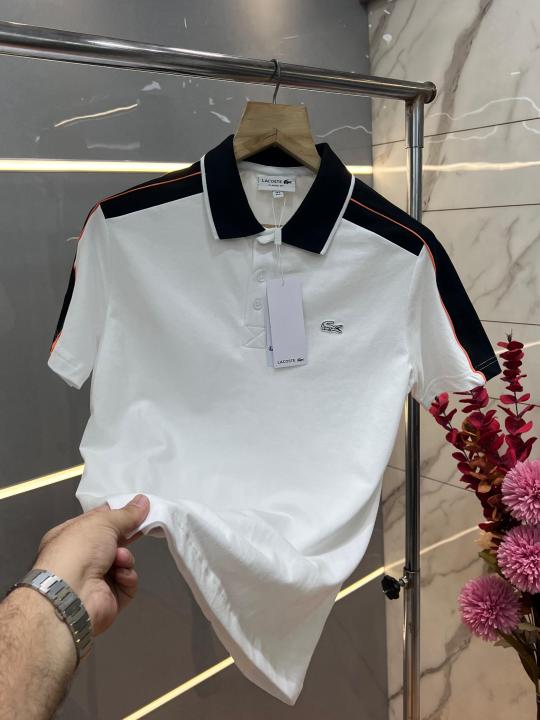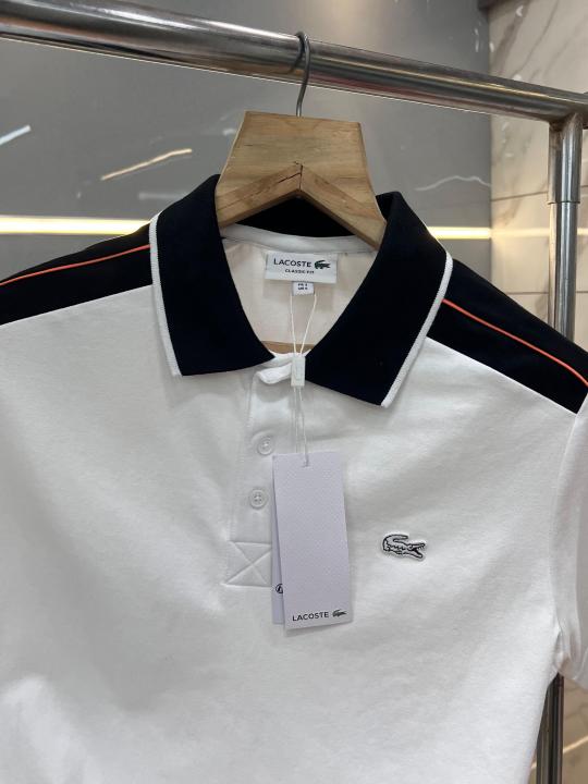Lacost e White Premium Cotton Pique fabric Polo Tshirt with Shoulder Design and Embroidered Logo 3536