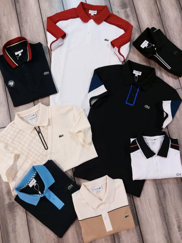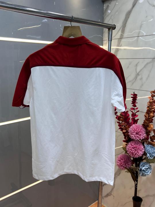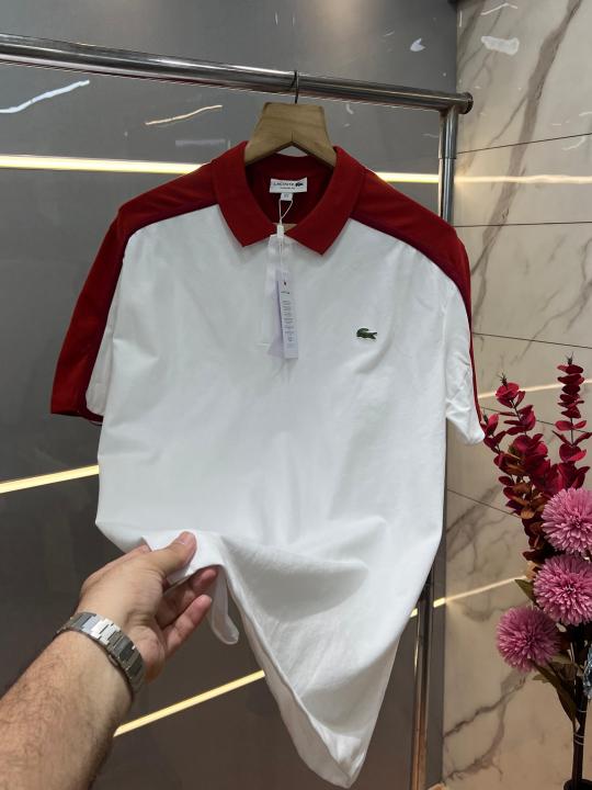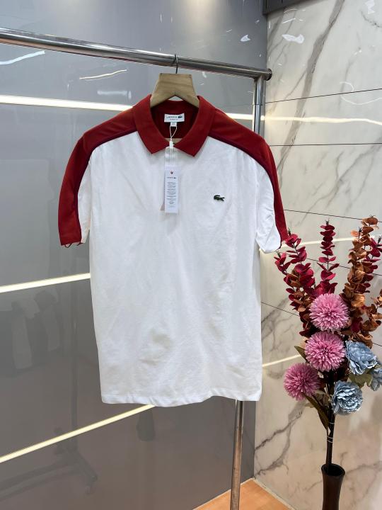Lacost e White Premium Cotton Pique fabric Polo Tshirt with Shoulder Design and Embroidered Logo 3532