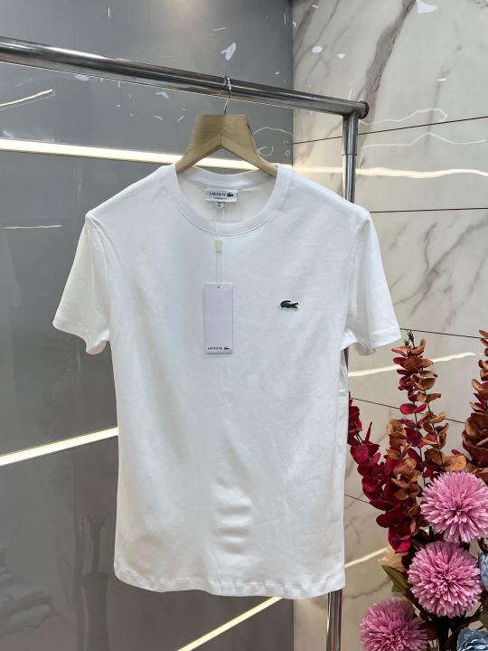 Home T-Shirts Lacost e White Premium Imported 240 GSM Interlock Lycra Fabric Round Neck with Back Printed Design Tshirt 3318