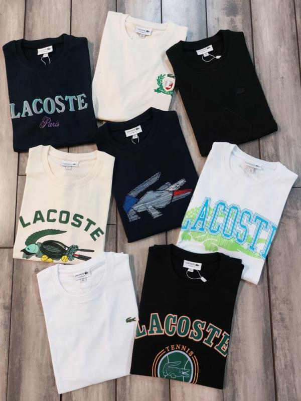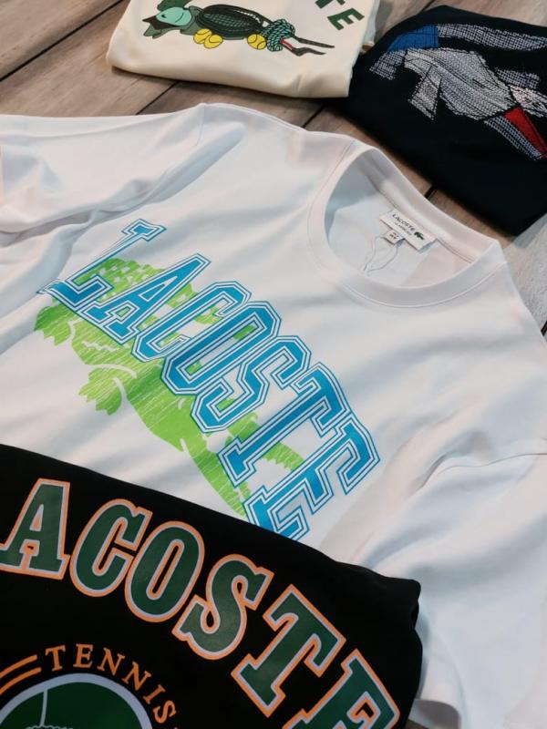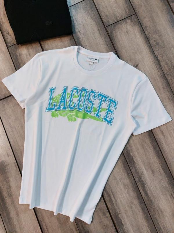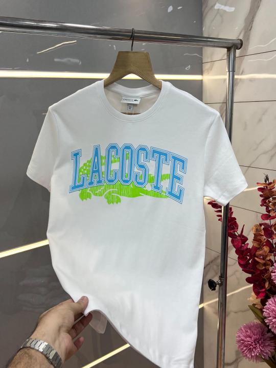 Home T-Shirts Lacost e White Premium Imported 240 GSM Interlock Lycra Fabric Round Neck with Front Printed Design Tshirt 3319