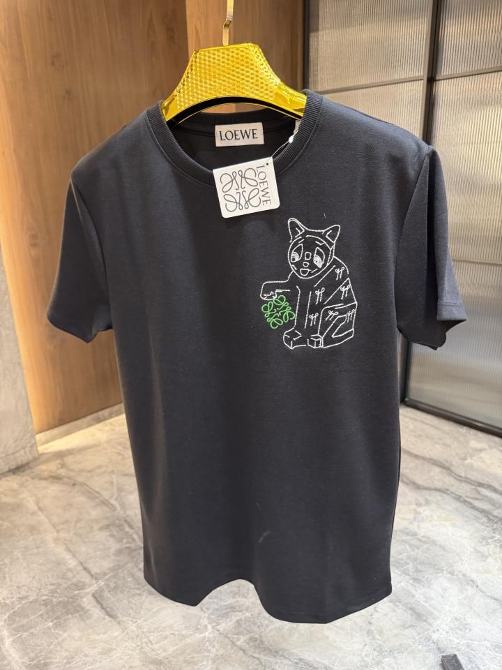 LOEWE BLACK PREMIUM EMBROIDERED LOGO ROUND NECK TSHIRTS