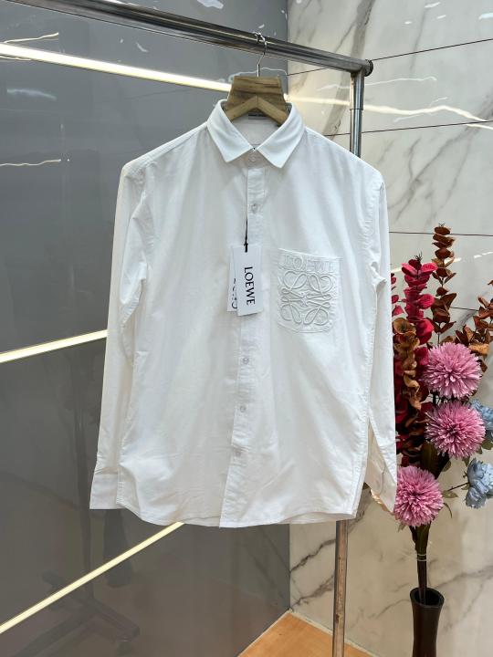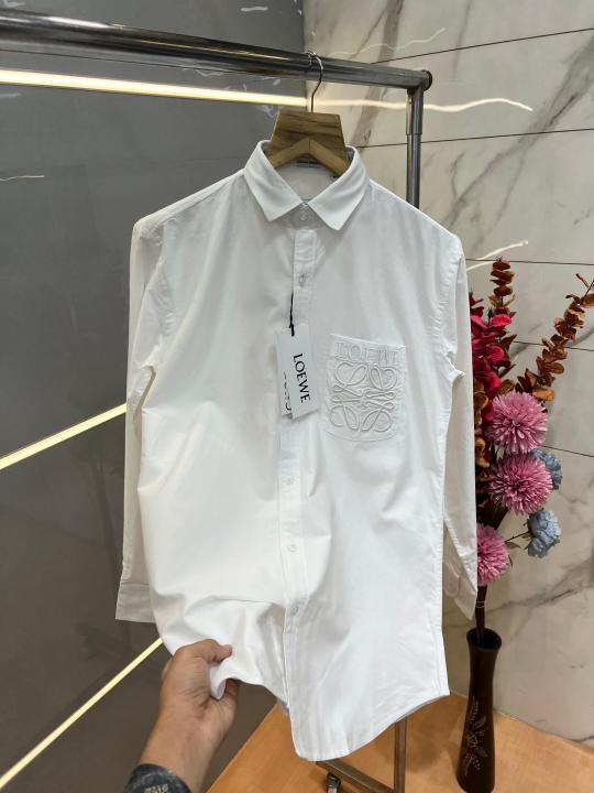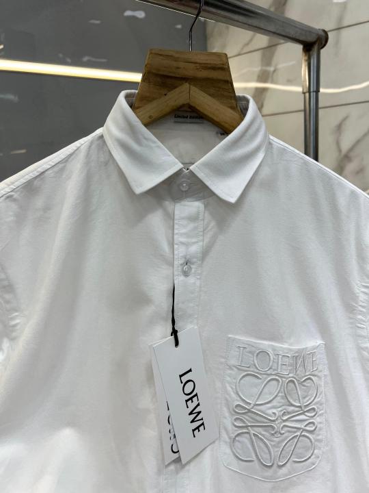 Home Shirts Loewe White Premium Shirt 2ply Heavy Oxford Cotton Fabric With custom Branded Button Tagging And Brand Poly Bag 3817