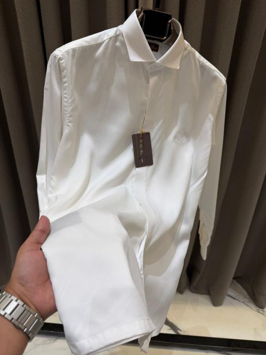 Home Shirts Lorro Piana Imported Korean Fabric Box Pack Full Sleeves Shirt White