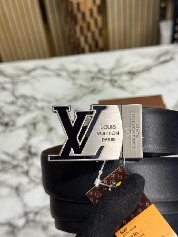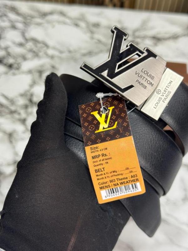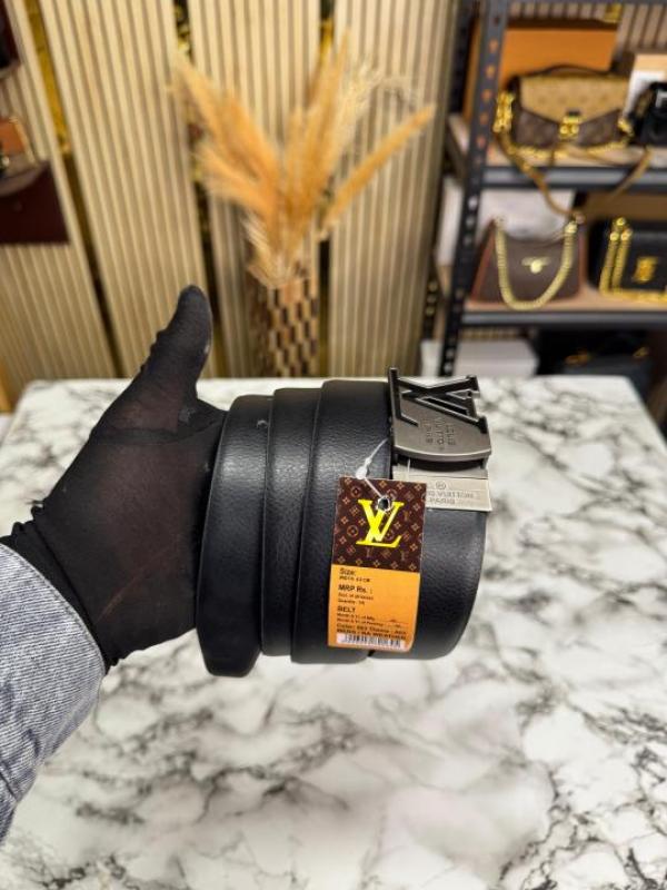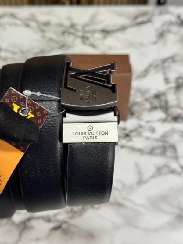 Loui_s vuitton black leather belt with silver buckle includes box damage box (m58)