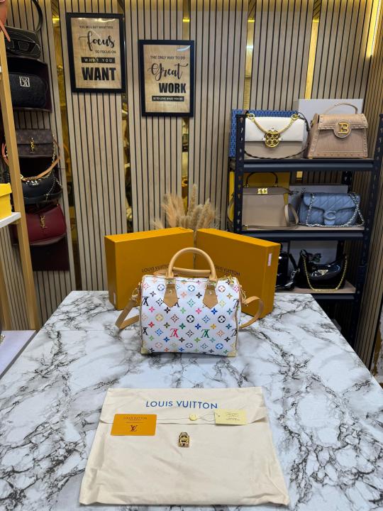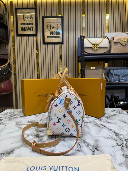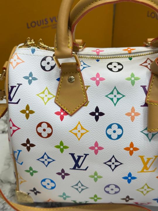 Loui_s Vuitton Speedy Monogram Multicolour Shoulder Bag With Box And Dust Bag (White-Flower) (13085)